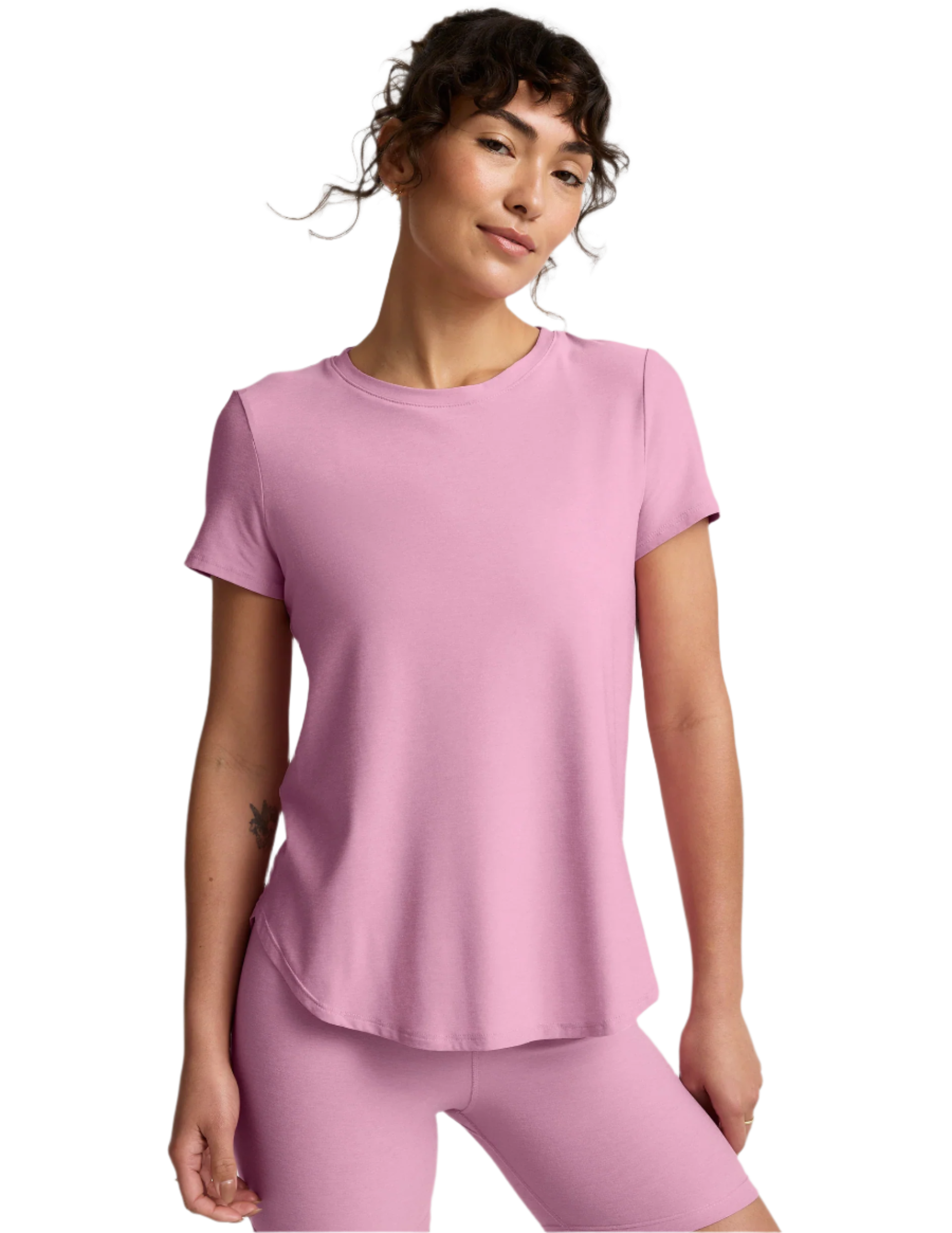 A relaxed fit tee made from our incredibly soft and lightweight, Featherweight Spacedye fabric. Complete with a curved hem, short sleeves, and long length for more coverage. Wear it with your favorite leggings or jeans for everyday style.