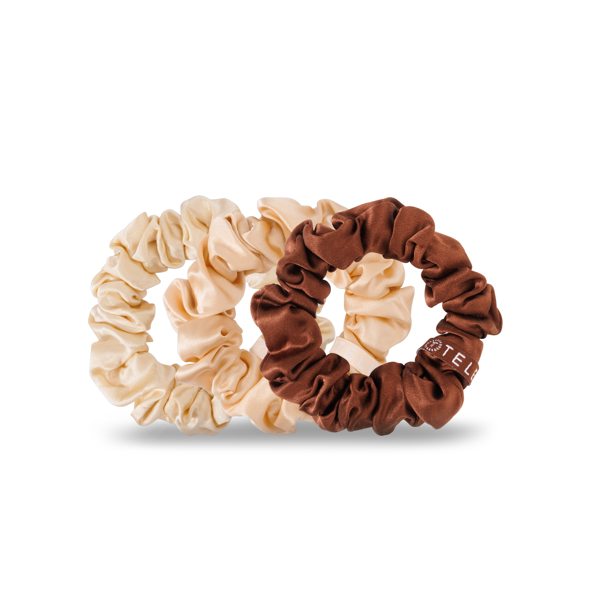 Your TELETIES just got an upgrade! These TELETIES Silk Scrunchies are made of 100% natural silk, making them super soft and gentle for your hair. It also prevents breakage and damage while you snooze. With our innovative TELETIES spiral coil inside, you get the same features of our game-changing hair ties, now covered in silk! Get ready to wake up with hip, happy and healthy hair!