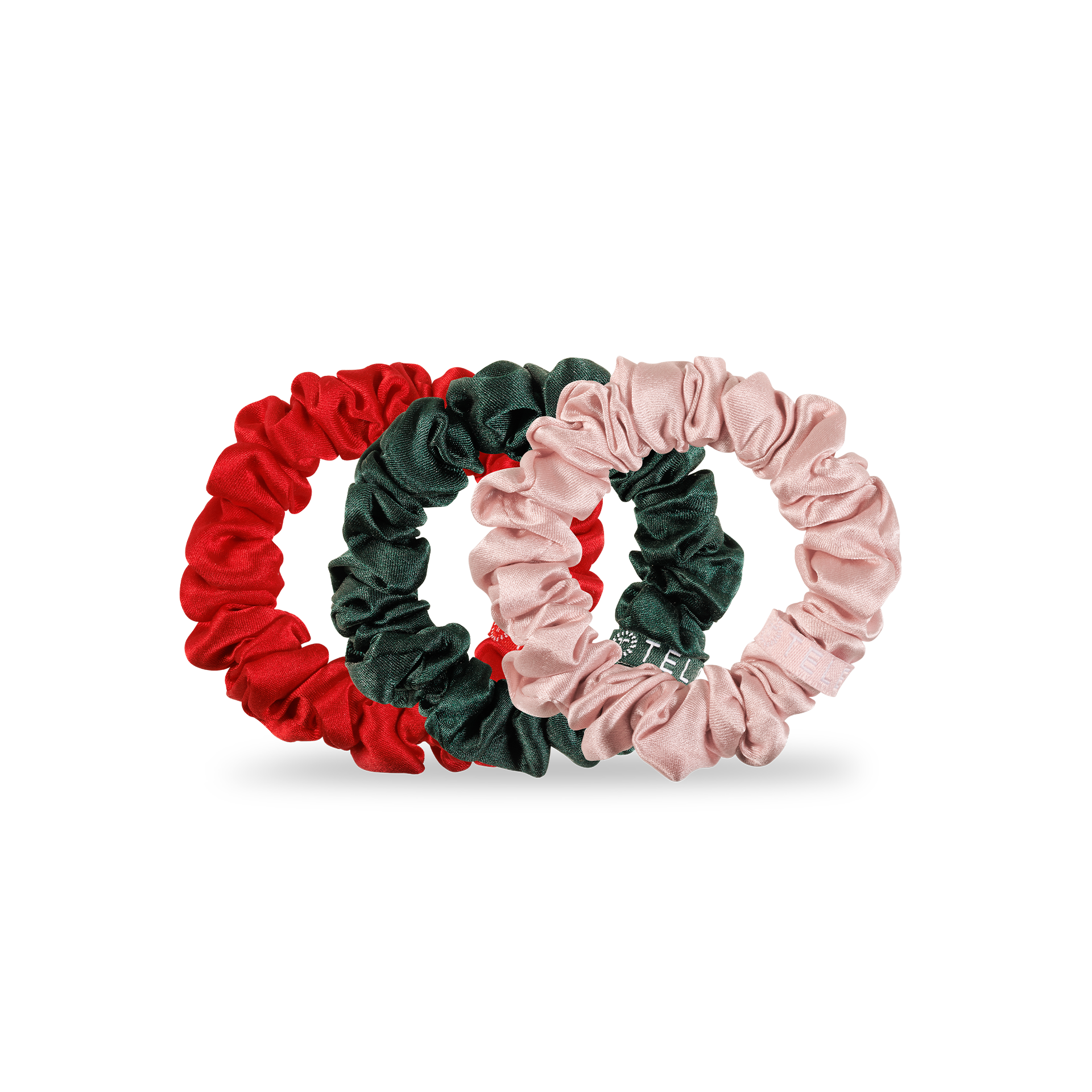Celebrate Christmas with the perfect holiday accessory! TELETIES Scrunchies, made from 100% natural silk, offer a luxurious and gentle hold without causing damage or breakage. Chic, durable, and practical, these scrunchies add a stylish touch to your look while keeping your hair in place. The ultimate stocking stuffer and accessory for both your hair and festive style!